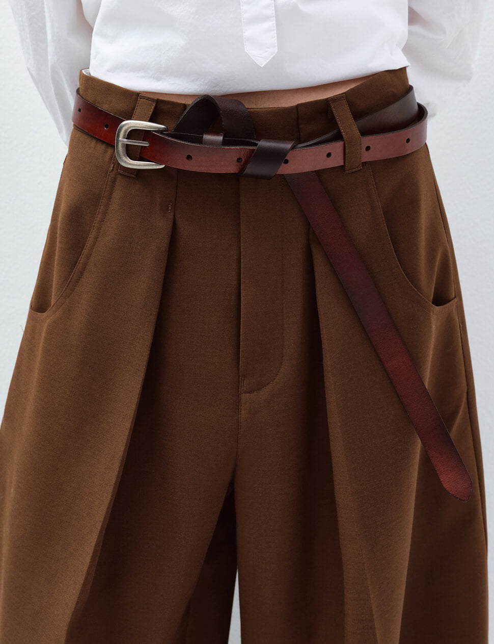 The genuine leather belt that styles itself. Our Long Leather Belt in brown is cut extra long so you can wrap, knot, or let the tail hang loose — the effortless styling detail that elevates any look. Made from real leather with a silver-tone western buckle. Wear it low on the hips over wide-leg pants or looped through jeans for an undone, editorial look.