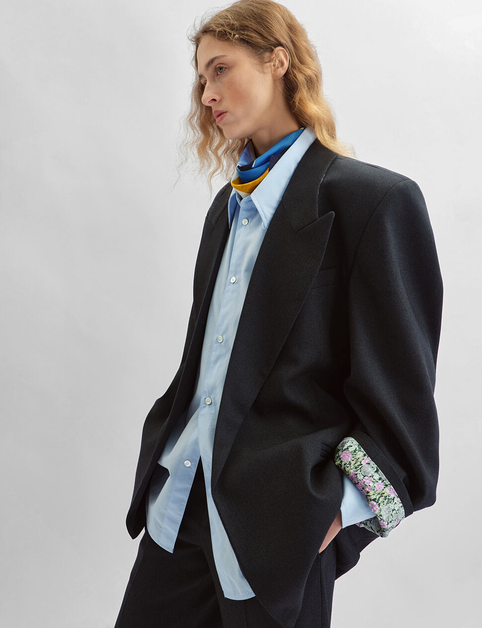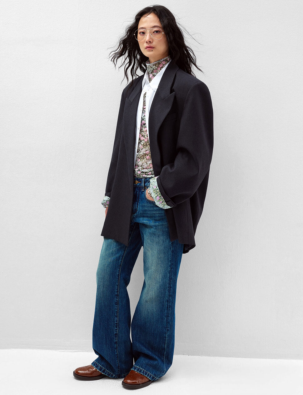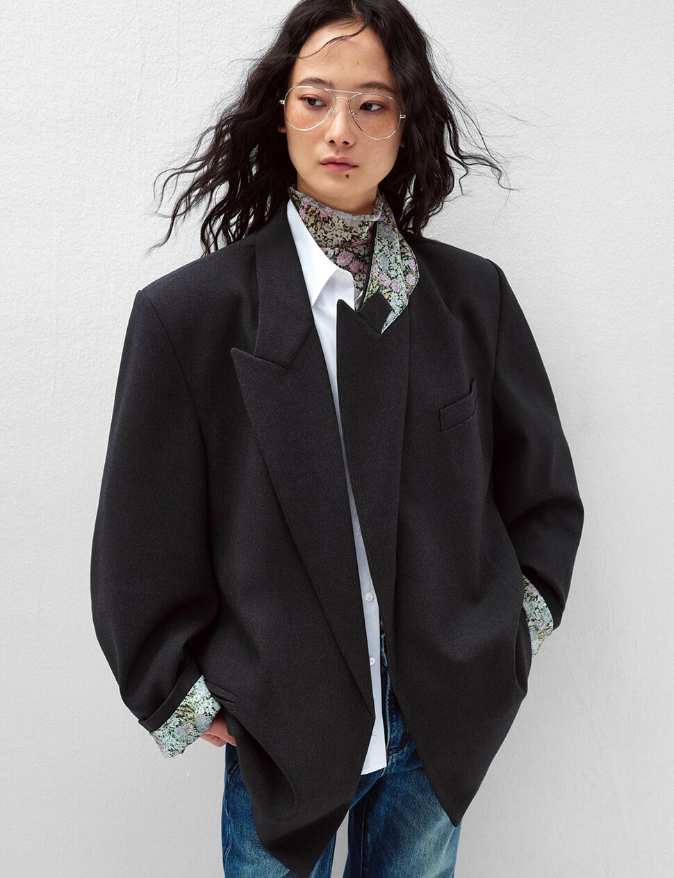 We produce on demand — once it's gone, it's gone.The color combination you didn't know you needed. Our Oversized Boyfriend Blazer in chic black finished with a surprise spring floral contrast lining that peeks through at the cuffs and lapel — a detail that elevates an already exceptional silhouette. Broad shoulders, deep pockets, and a longline cut that works as hard dressed up as it does thrown over jeans. The boyfriend blazer, reimagined.