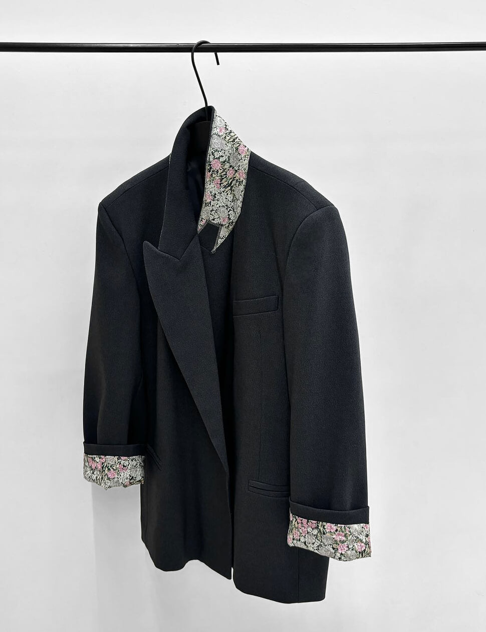 Black Oversized Blazer with Floral Contrast Lining-PREORDER