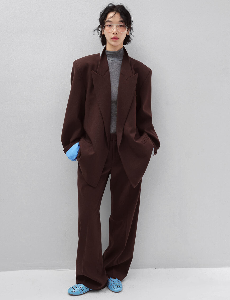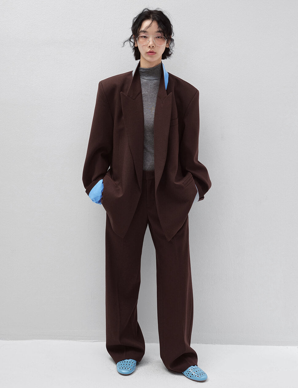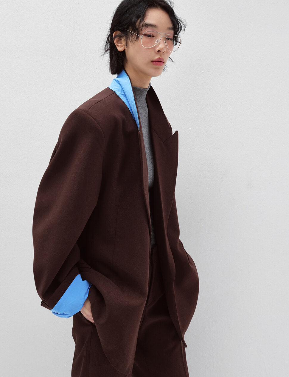 Brown Oversized Blazer with Blue Contrast Lining-PREORDER