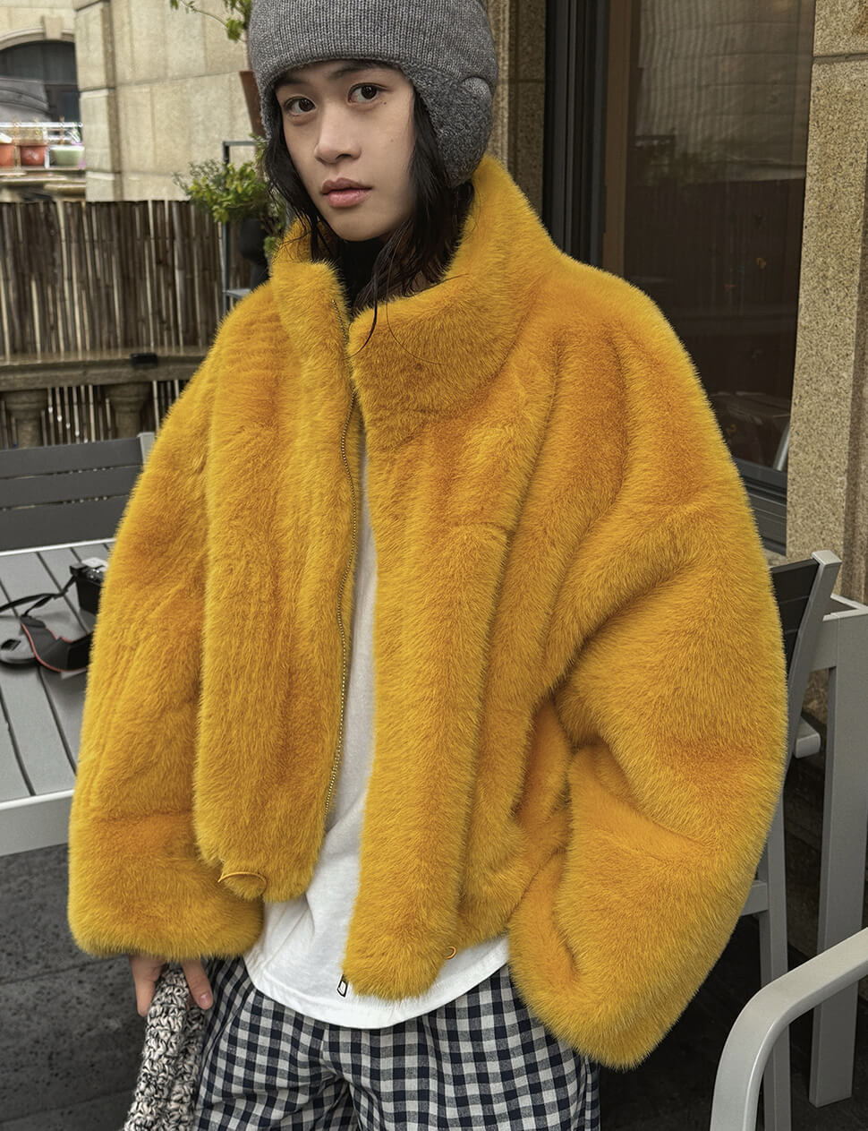 Mustard Fur Bomber Jacket-PREORDER
