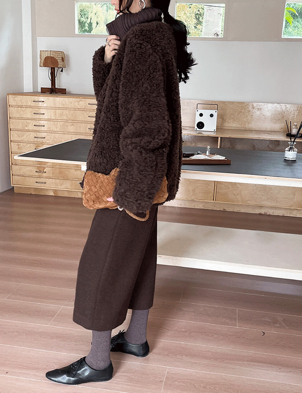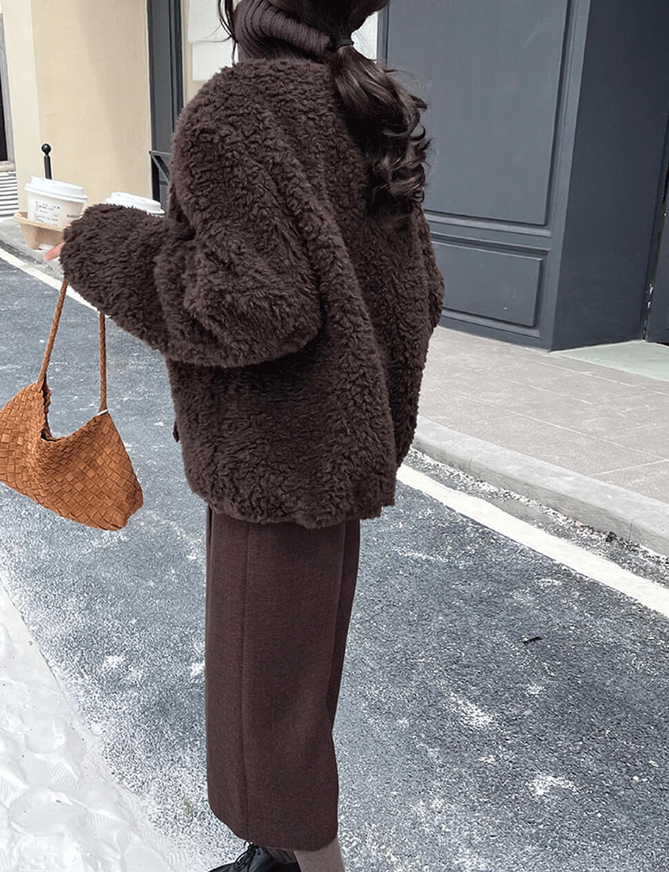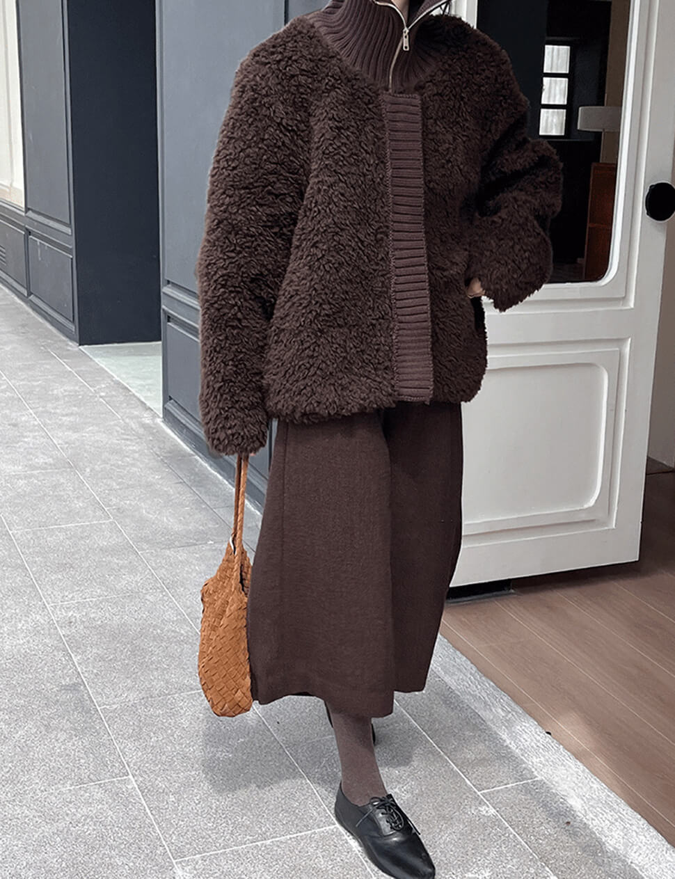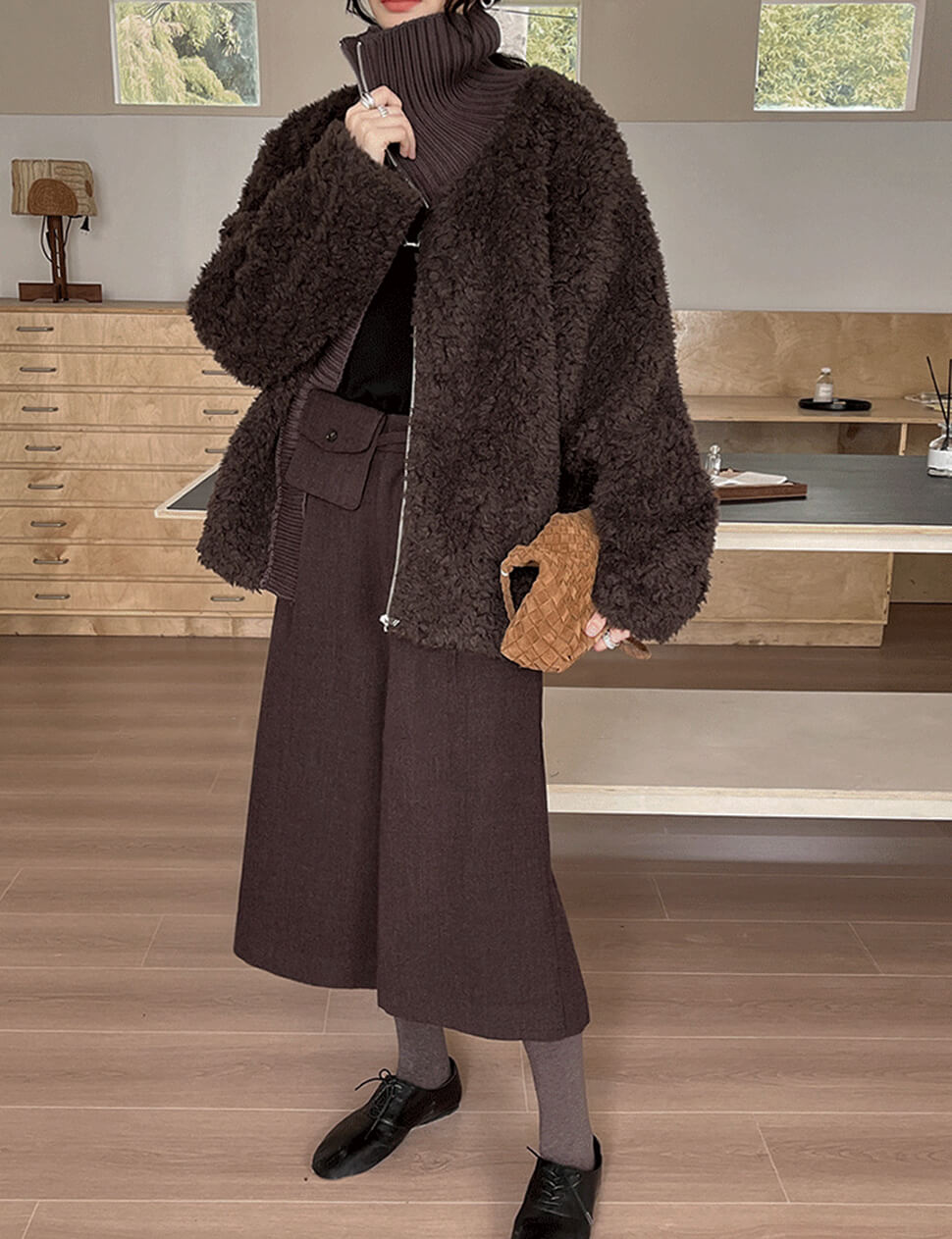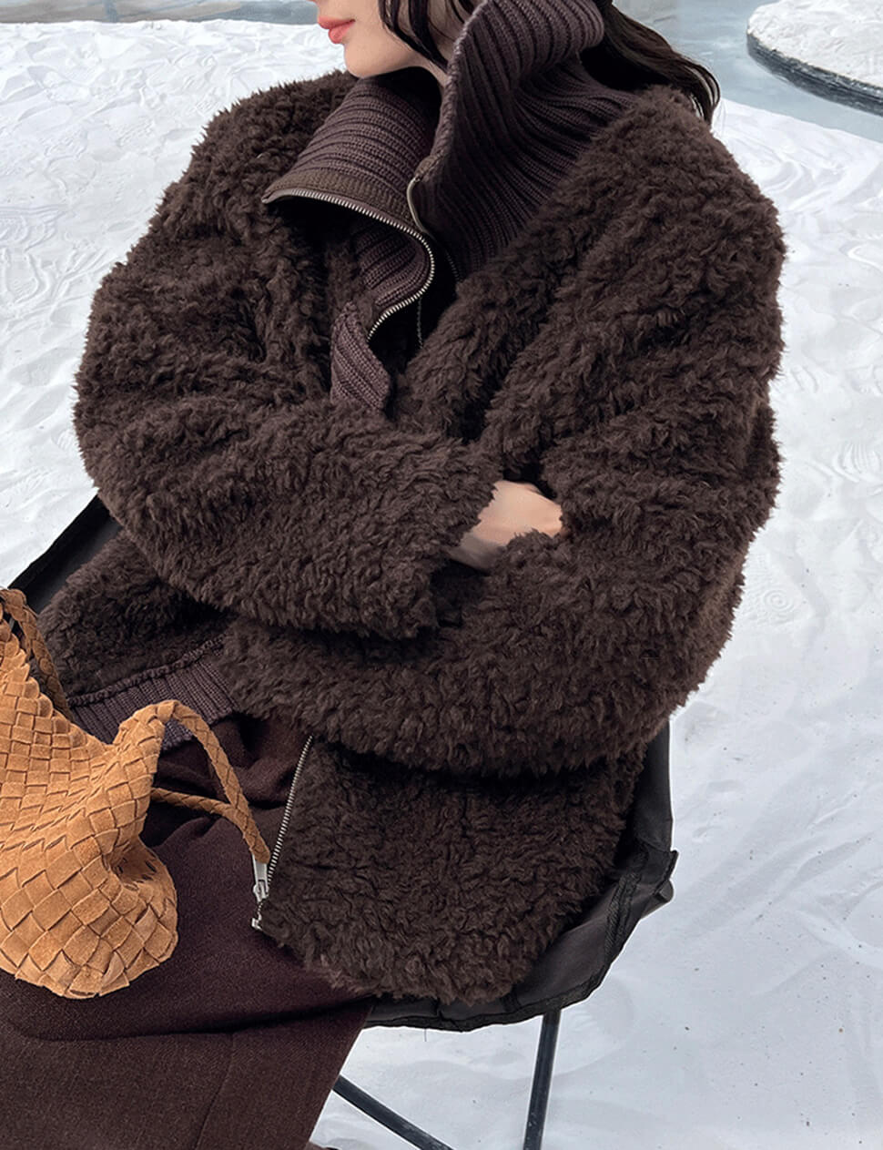 Brown Fur Knit Zip Jacket- PREORDER