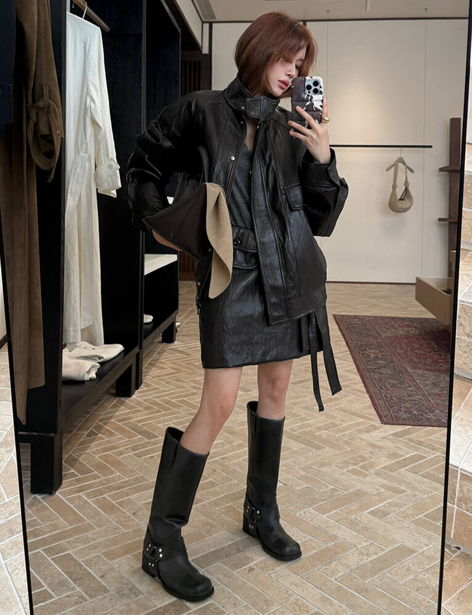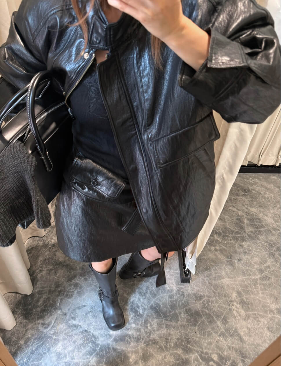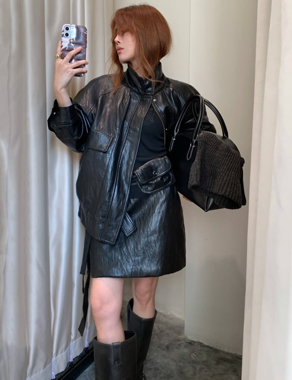 Black High-Neck Leather Jacket-PREORDER