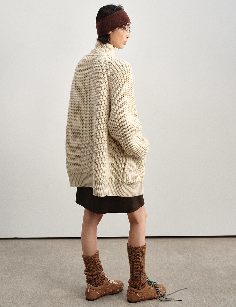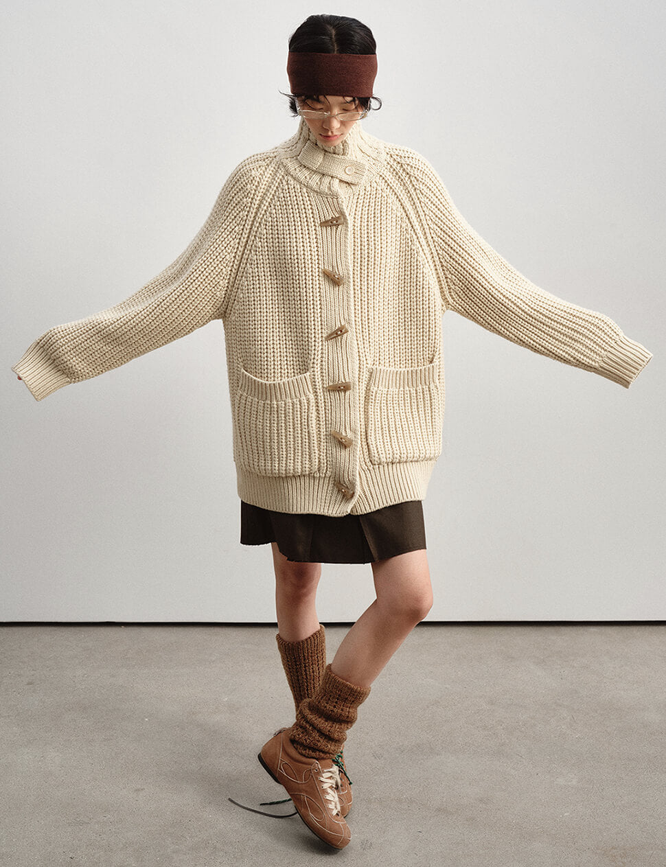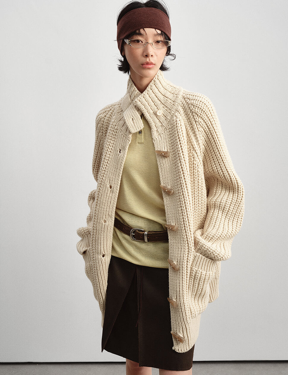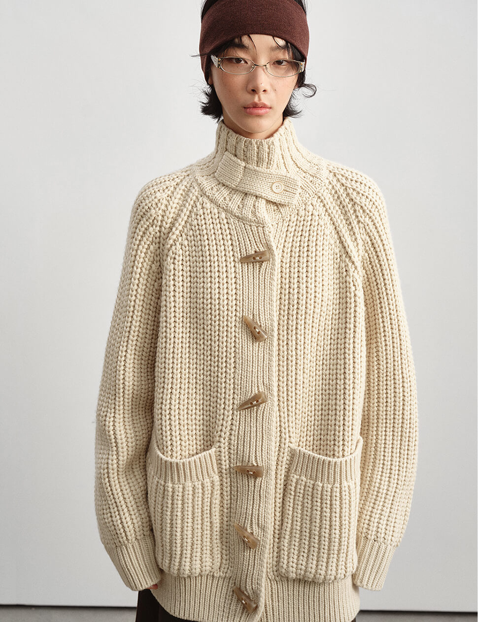 Our pre-order allows us to produce on demand, minimizing waste.Chunky oversized cardigan with horn-hook button closure