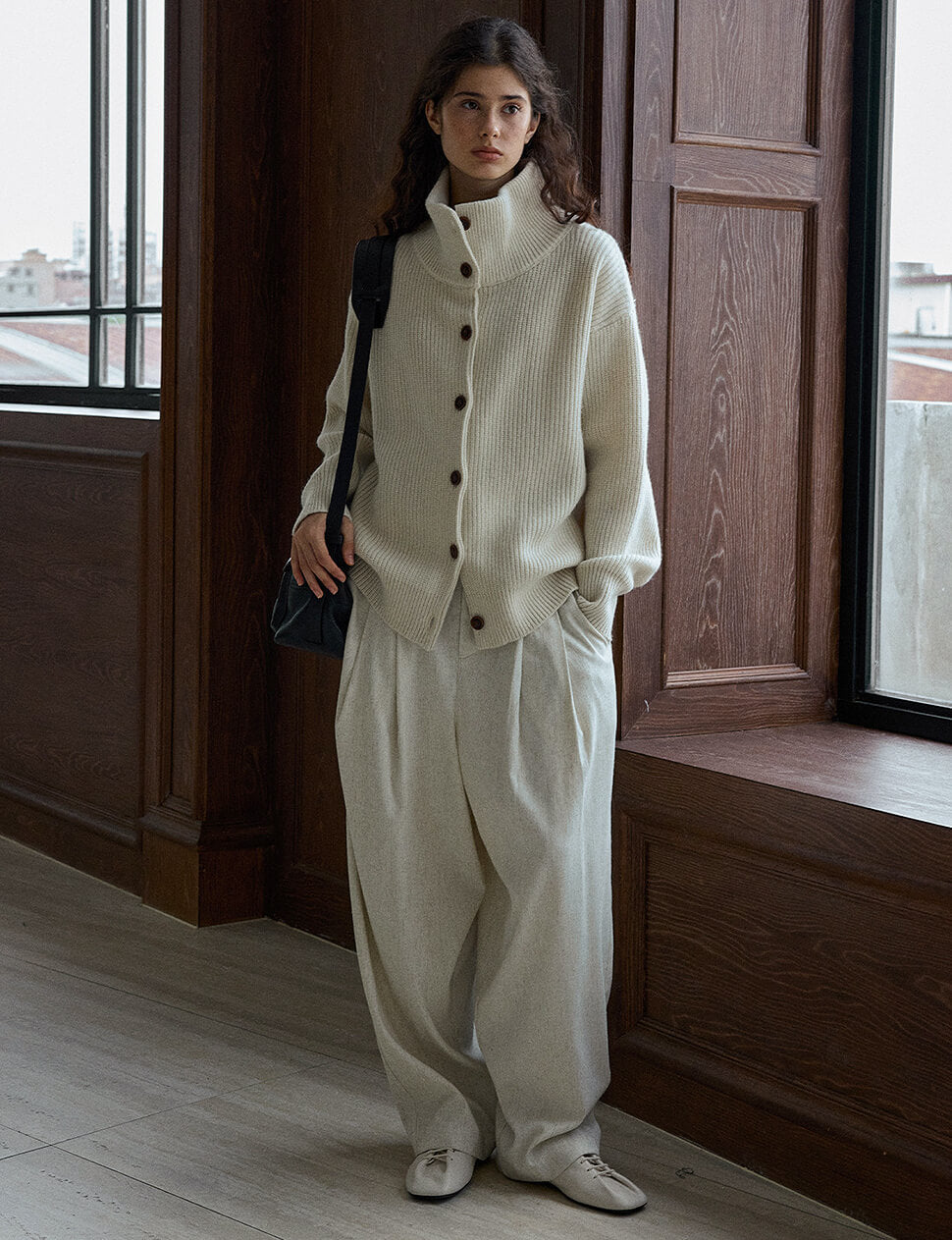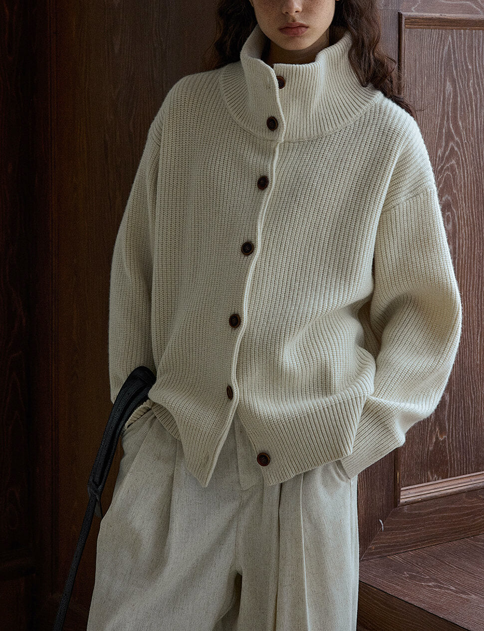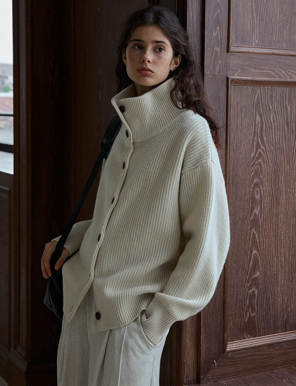 Our pre-order allows us to produce on demand, minimizing waste.Oversized Funnel High Neck Knit Cardigan