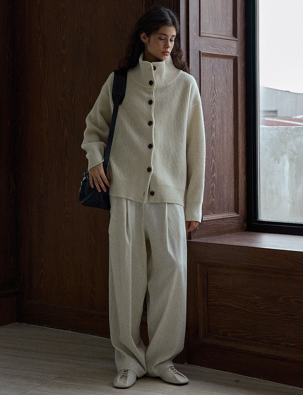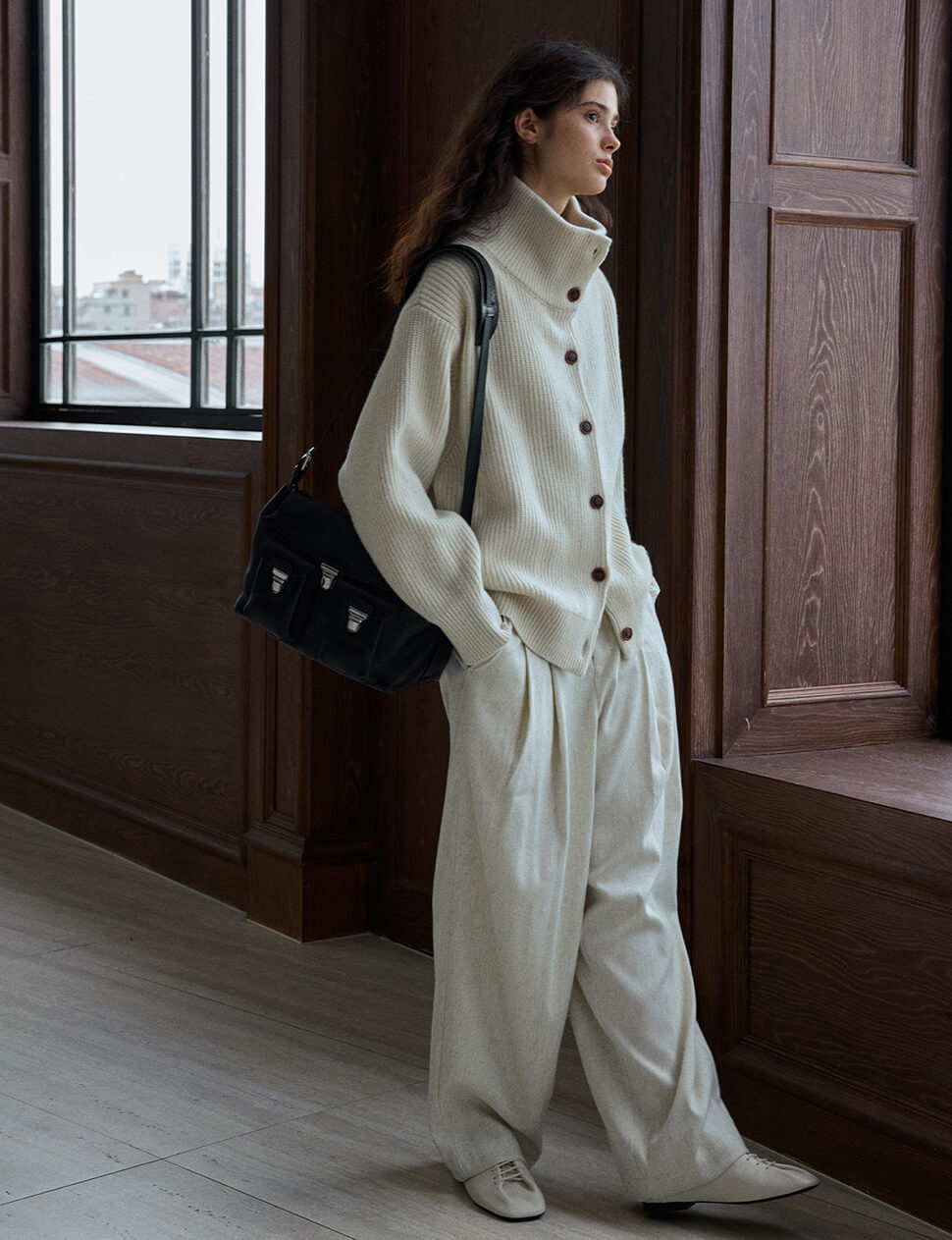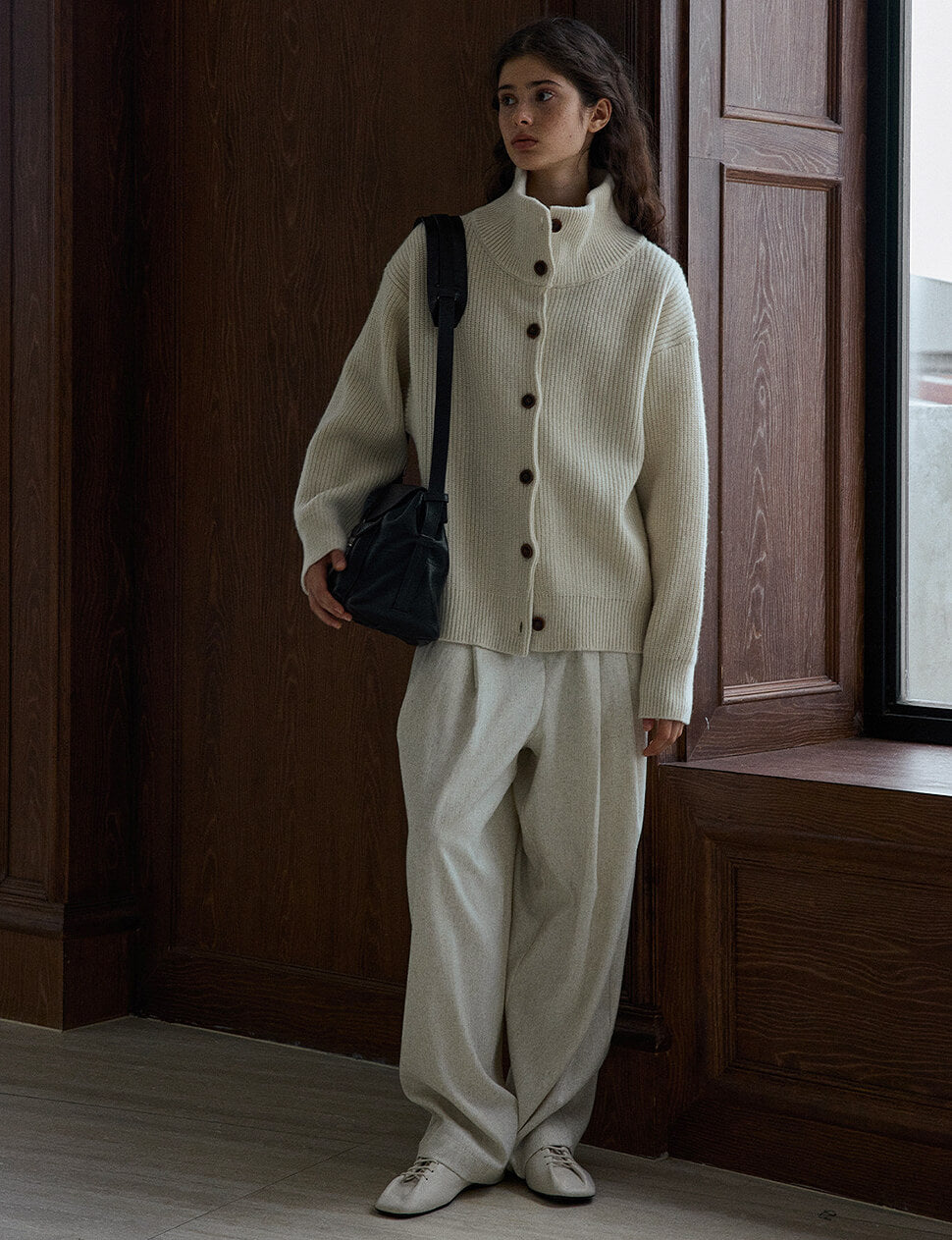 Our pre-order allows us to produce on demand, minimizing waste.Oversized Funnel High Neck Knit Cardigan