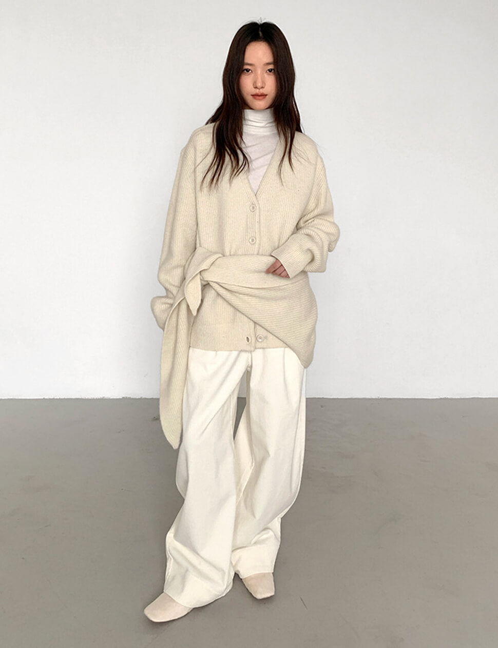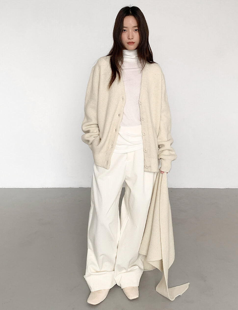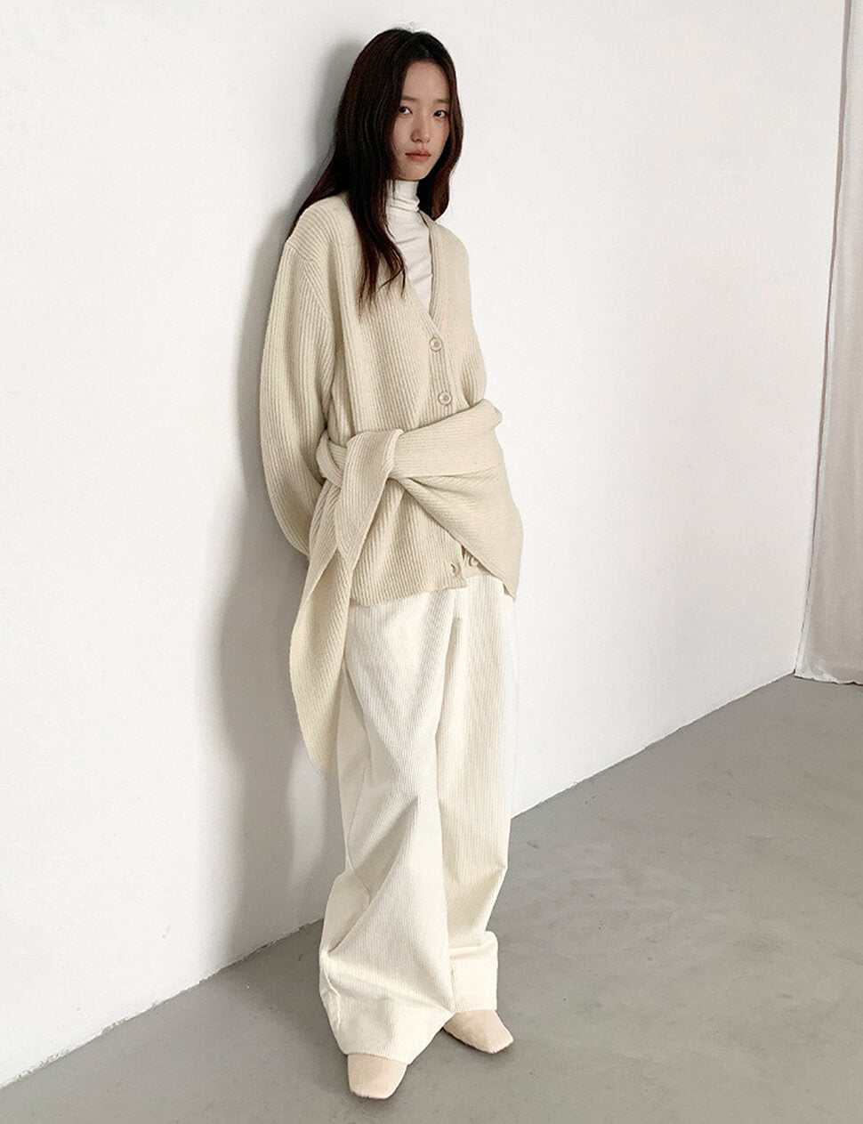 Our pre-order allows us to produce on demand, minimizing waste.Ivory knit cardigan with separate knit matching scarf
