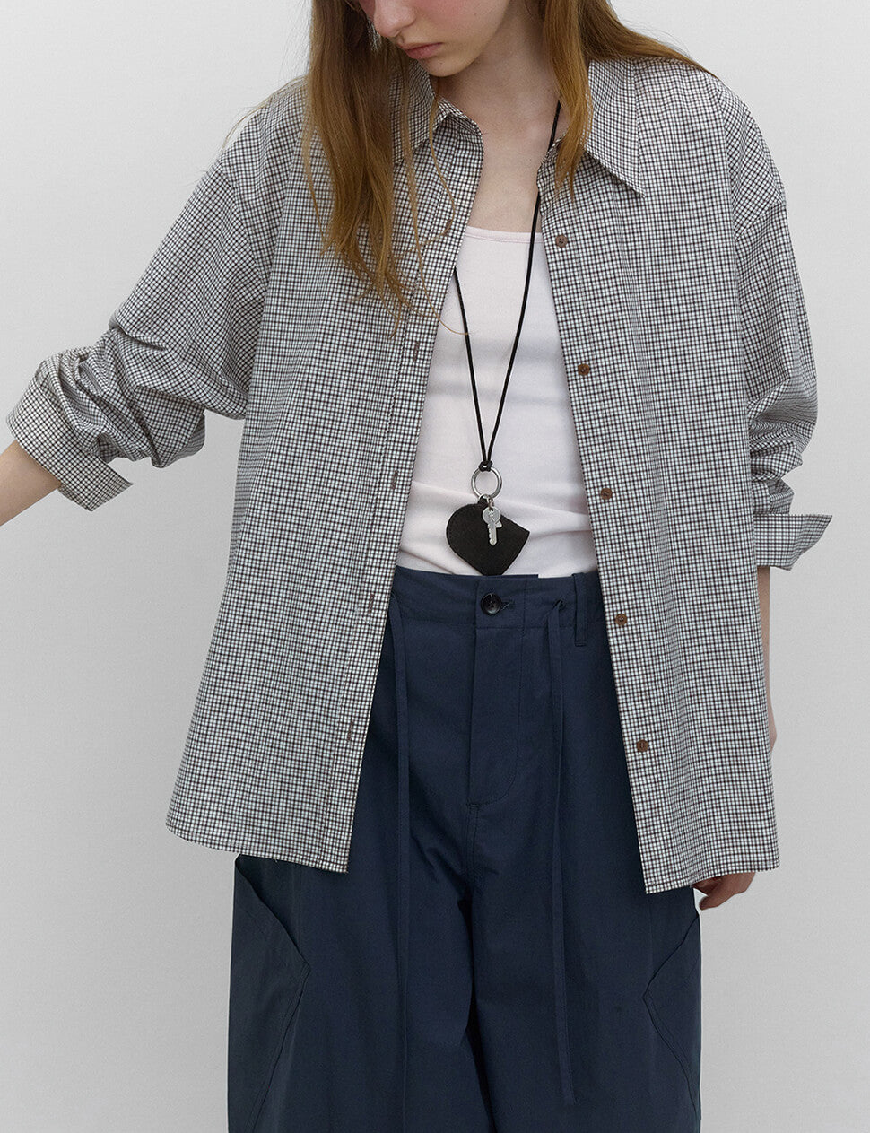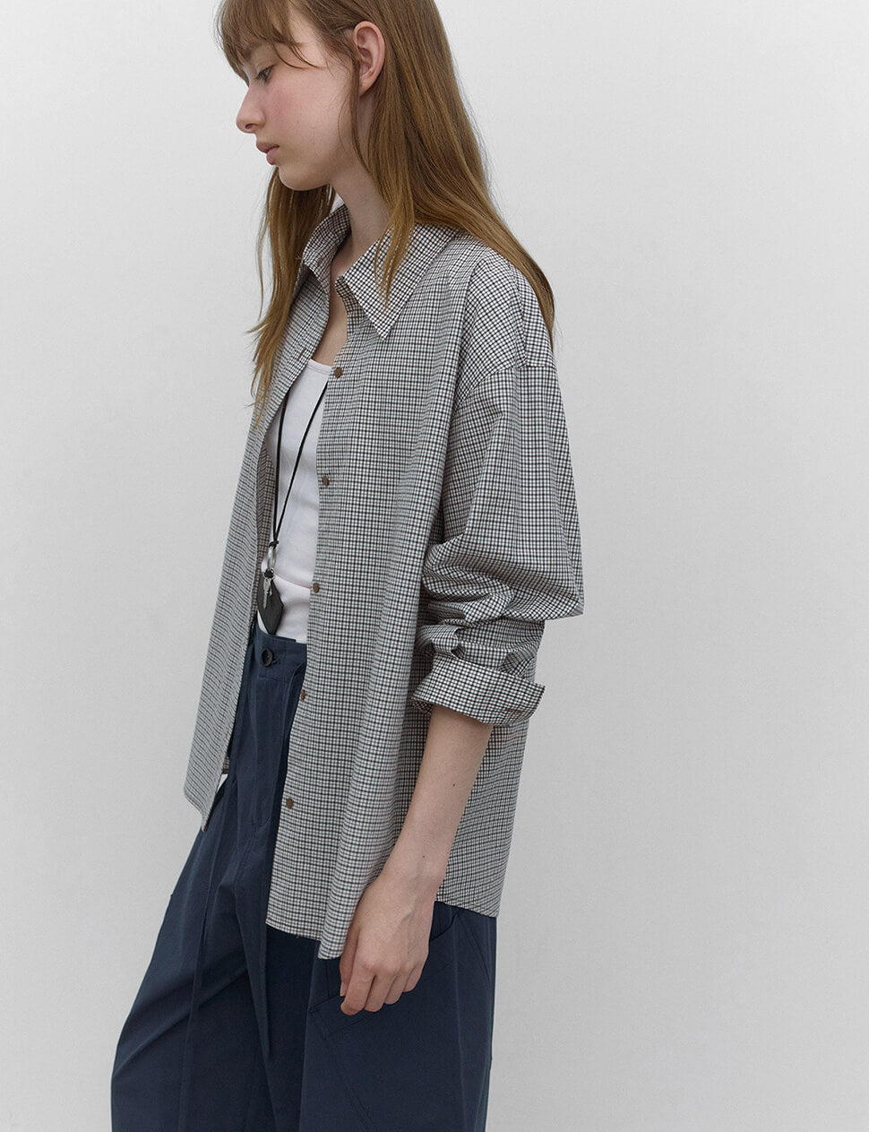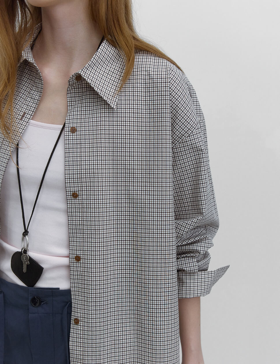 Our pre-order allows us to produce on demand, minimizing waste.Gray plaid everyday shirt