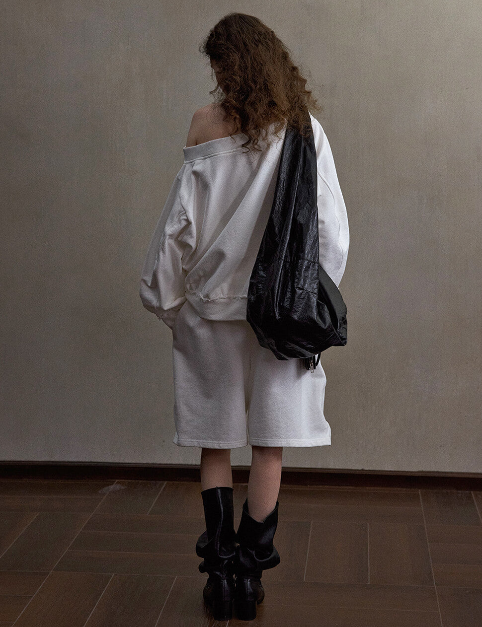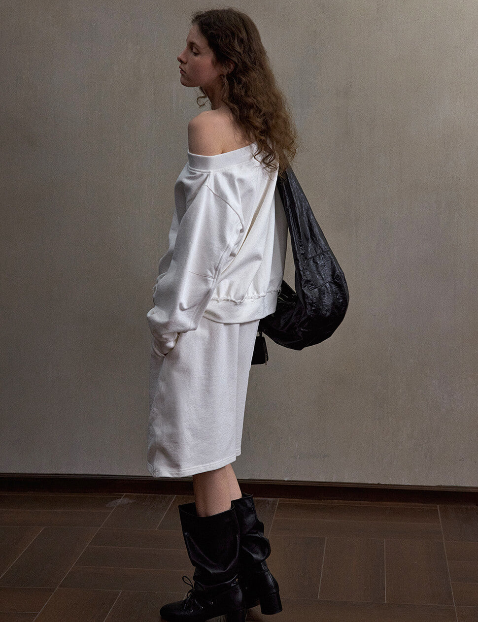 White Off-Shoulder Oversized Sweatshirt-PREORDER