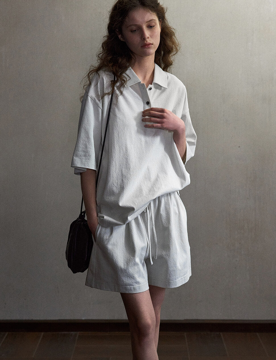 We produce on demand-once it's gone, it's gone.The polo shirt, done properly. Cut in 100% cotton with a generous oversized fit, dropped shoulders and a short sleeve that hits just right — this is the piece you reach for when you want to look put together without trying. The half-button polo collar adds just enough detail to make it interesting.Wear it tucked into wide-leg pants, loose over bike shorts, or knotted at the hem. One size fits all.