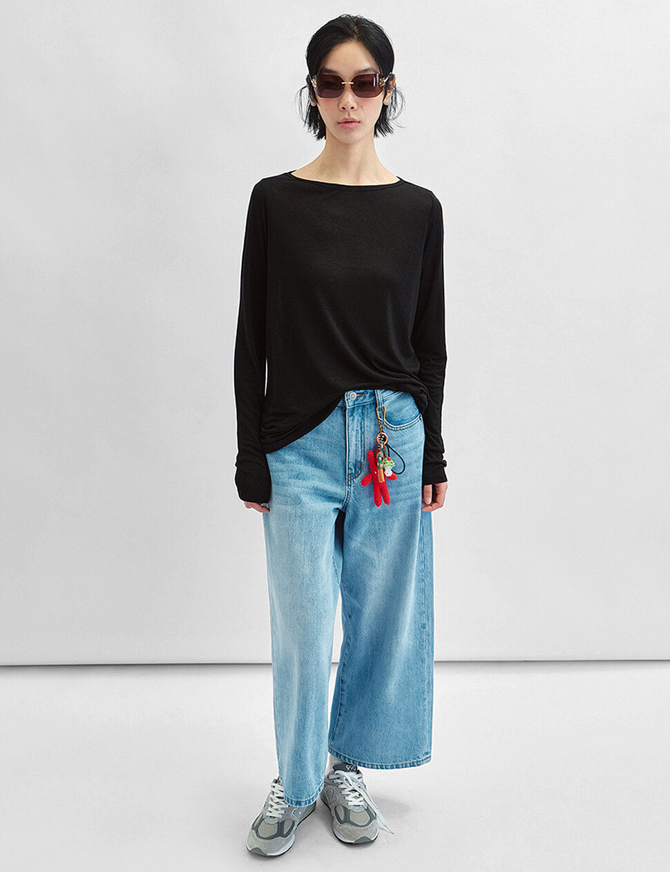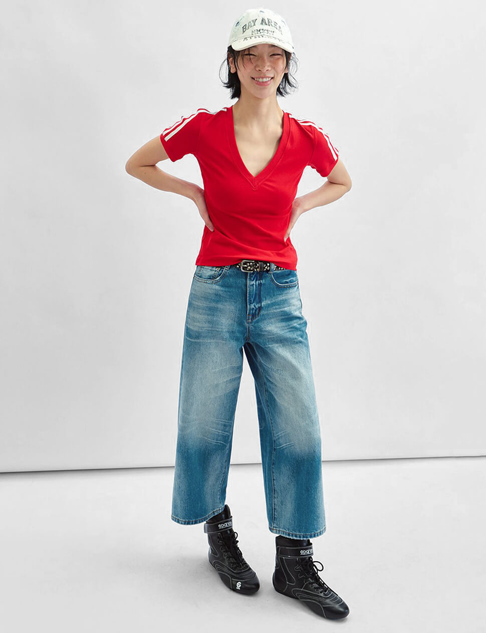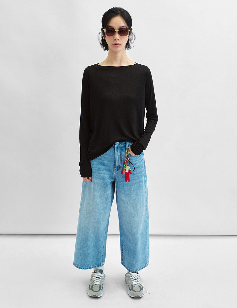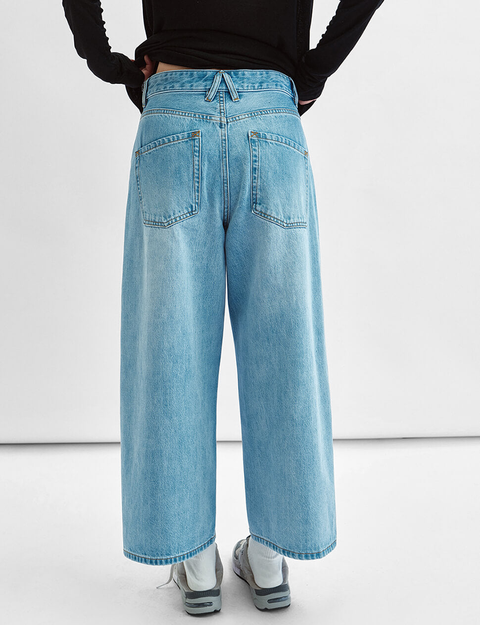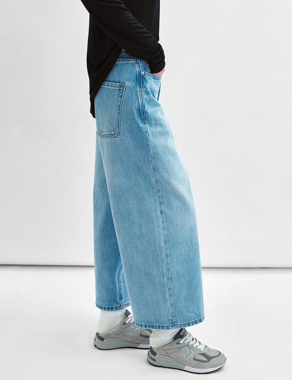 The jean that's everywhere right now — and for good reason. These high-rise wide-leg cropped jeans hit the perfect proportions: a waist-defining rise, an exaggerated wide leg, and a cropped hem that works with everything from chunky sneakers to mules. Cut in light wash denim with a subtle fade, they bring effortless off-duty cool to any outfit.