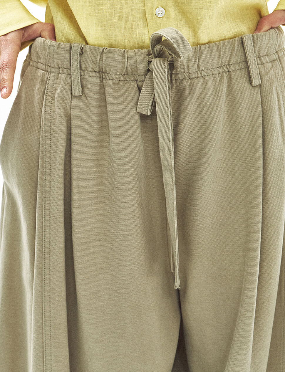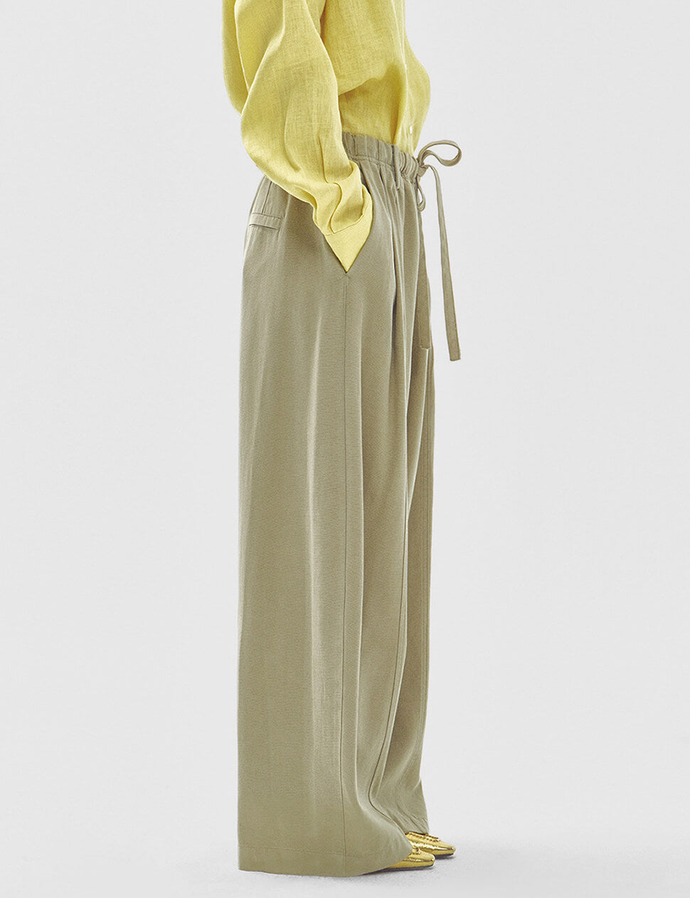 Wide-Leg Drawstring Trousers in Khaki