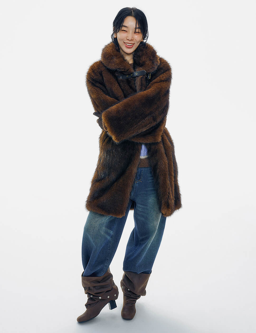 Brown Buckled Neck Fur Coat -PREORDER