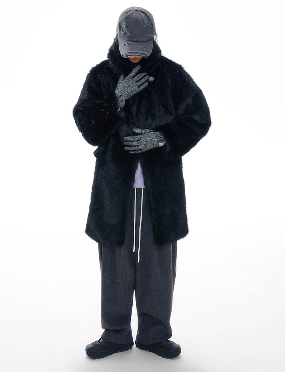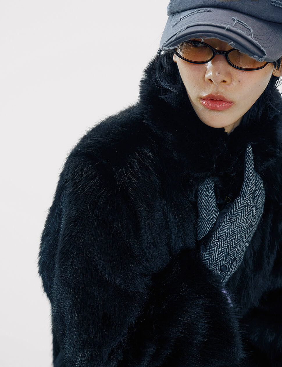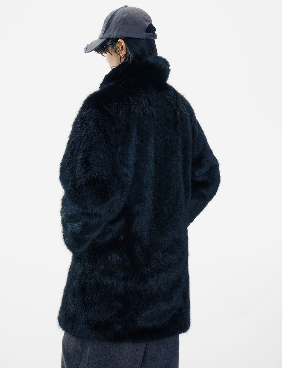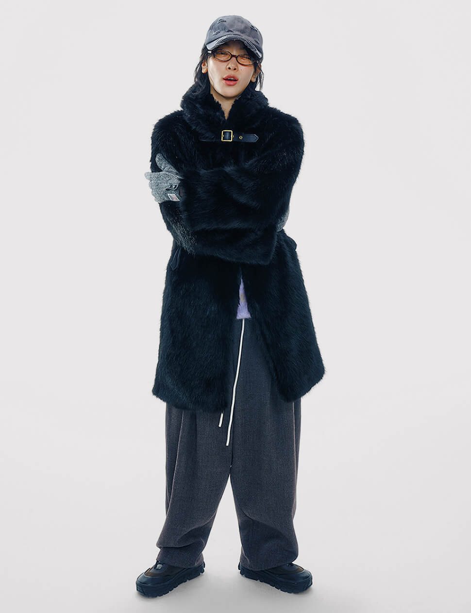Our pre-order allows us to produce on demand, minimizing waste.Faux Fur Buckled Neck Coat