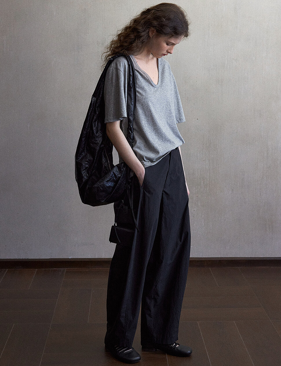 We produce on demand-once it's gone, it's gone.The t-shirt you've been looking for. Cut in a relaxed fit with a soft scoop neckline, this is the kind of piece that looks effortless with everything — wide-leg pants, a slouchy denim, a skirt. The fabric blend of lyocell, cotton and hemp gives it a lived-in drape that gets better every time you wear it, without ever looking sloppy. The slightly curved hem sits just right whether you tuck it, half-tuck it, or leave it alone.